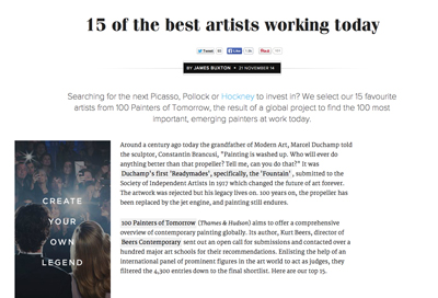 100 PAINTERS OF TOMORROW EXHIBITION 30th October from 6-9pm at Ryder Street Gallery at Christie’s, King’s Street, London. 28 November - 17 January, 2015, Beers Contemporary, 1 Baldwin Street, London, EC1V 9NU. London Art Fair 21st-25th Jan 2015 |